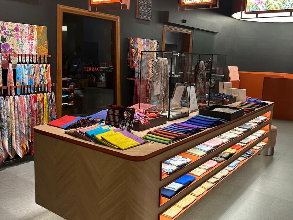Towards the end of the visit, we usually encourage guests to spend some time at the contemporary art center connected to the house. This area brings a more modern layer to the experience, with rotating exhibitions by local and international artists. There is also a well-curated gift shop and the Jim Thompsom shopping outlet at the exit of the house, giving visitors the chance to shop for beautiful high-quality silk items, home décor, and thoughtfully designed souvenirs inspired by Thai culture.